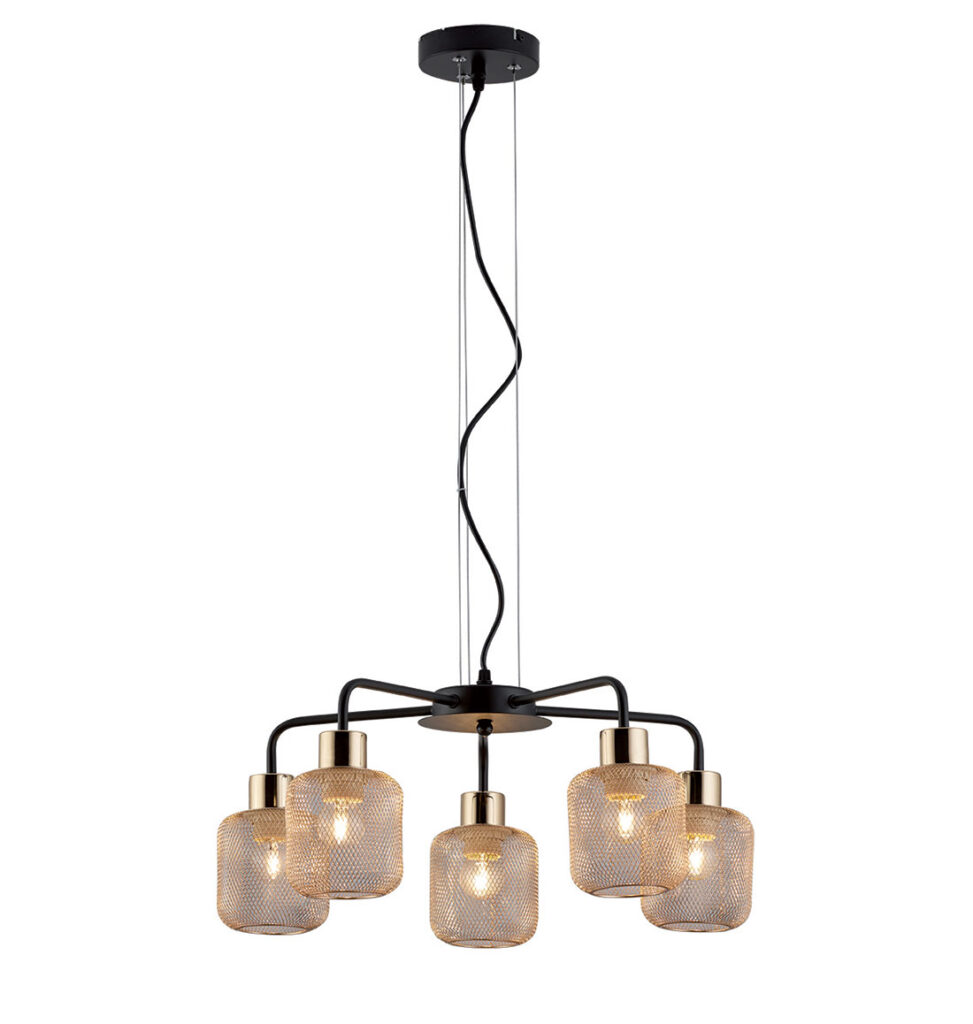 Viokef Κρεμαστό Φωτιστικό Loren 5Φ με Καπέλο Πλέγμα Χρυσό Ματ
