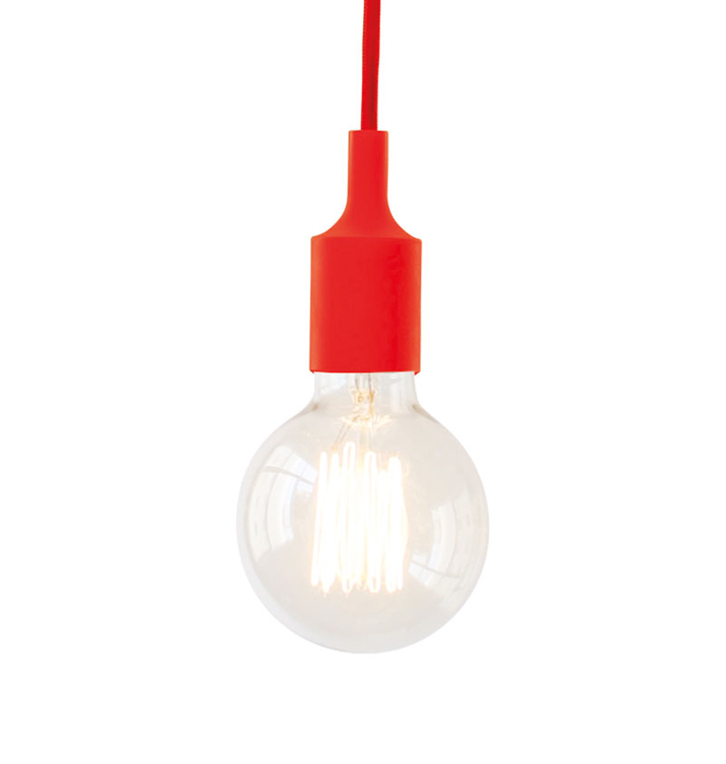 ACA Decor Φωτιστικό Κρεμαστό Σιλικόνης με Υφασμάτινο Καλώδιο Ε27 Κόκκινο