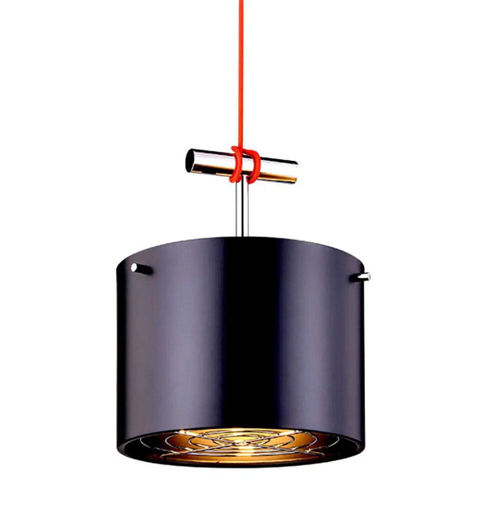 Zambelis Κρεμαστό Μεταλλικό Φωτιστικό Φ30cm Μαύρο με Χρώμιο και Κόκκινο Καλώδιο