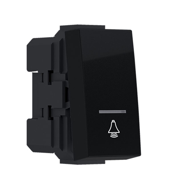 Elektromaterial MODYS Μπουτόν με Ένδειξη & Σύμβολο Κουδούνι 10A 1Σ 1P Μαύρο Ματ