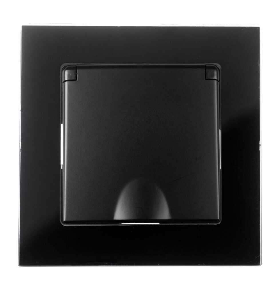 Bassiakos Nefeli Πρίζα Σούκο Ασφαλείας με Καπάκι 16A με Πλαίσιο Μαύρο Γυαλί