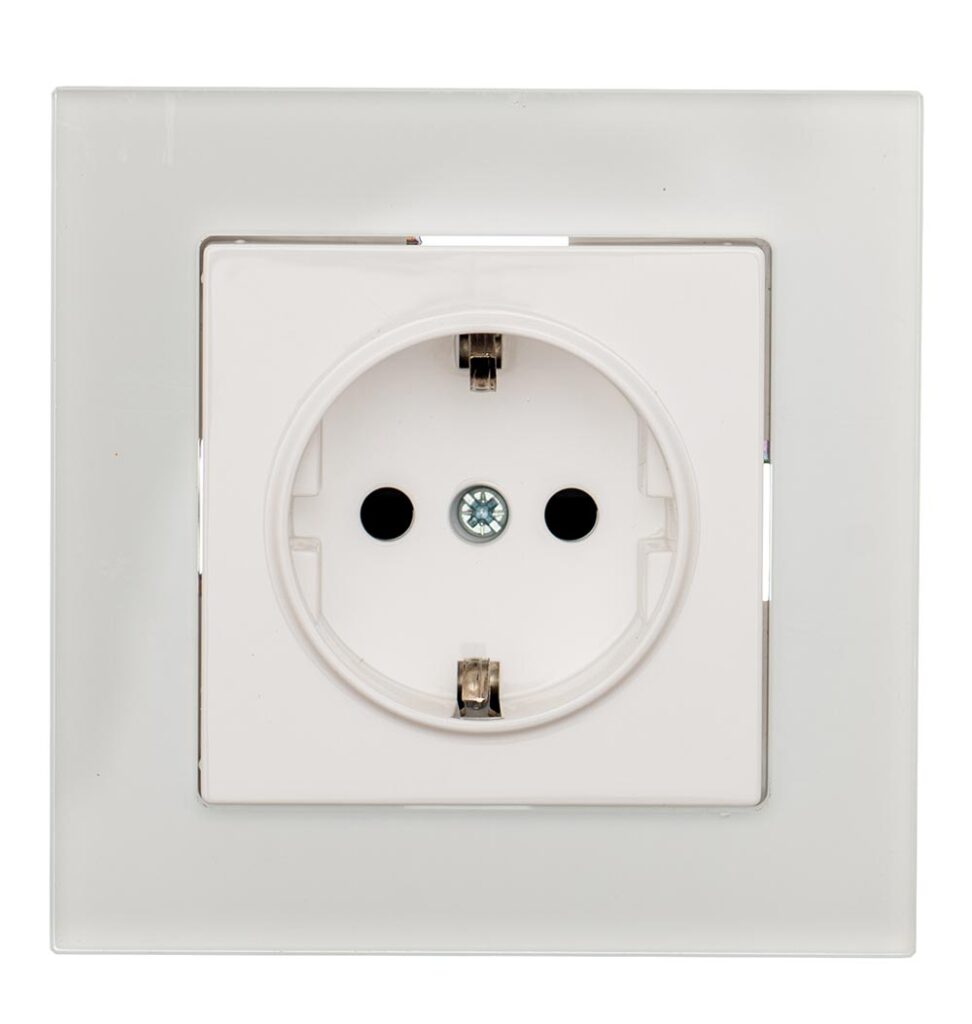 Bassiakos Nefeli Πρίζα Σούκο Ασφαλείας 16A με Πλαίσιο Λευκό Γυαλί