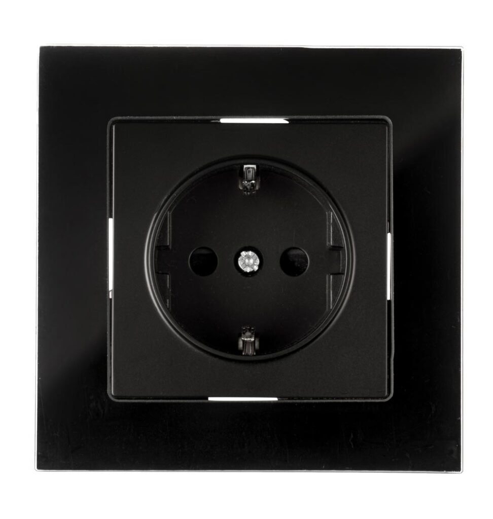 Bassiakos Nefeli Πρίζα Σούκο Ασφαλείας 16A με Πλαίσιο Μαύρο Γυαλί