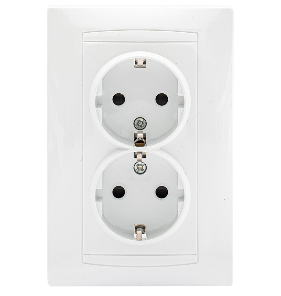 Bassiakos Χαλκίδα Πρίζα Σούκο Ασφαλείας Διπλή 16A με Πλαίσιο Λευκή