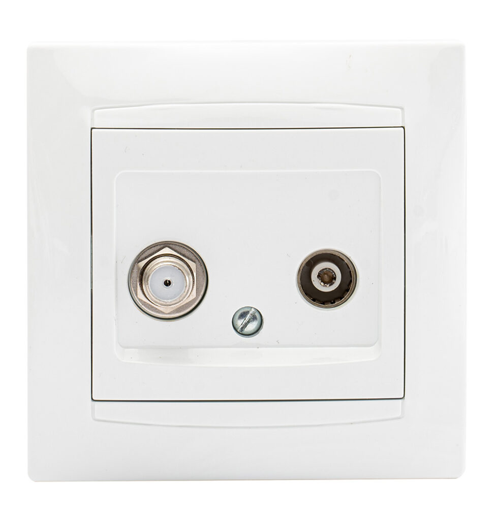 Bassiakos Χαλκίδα Πρίζα TV+SAT Τερματική με Πλαίσιο Λευκή