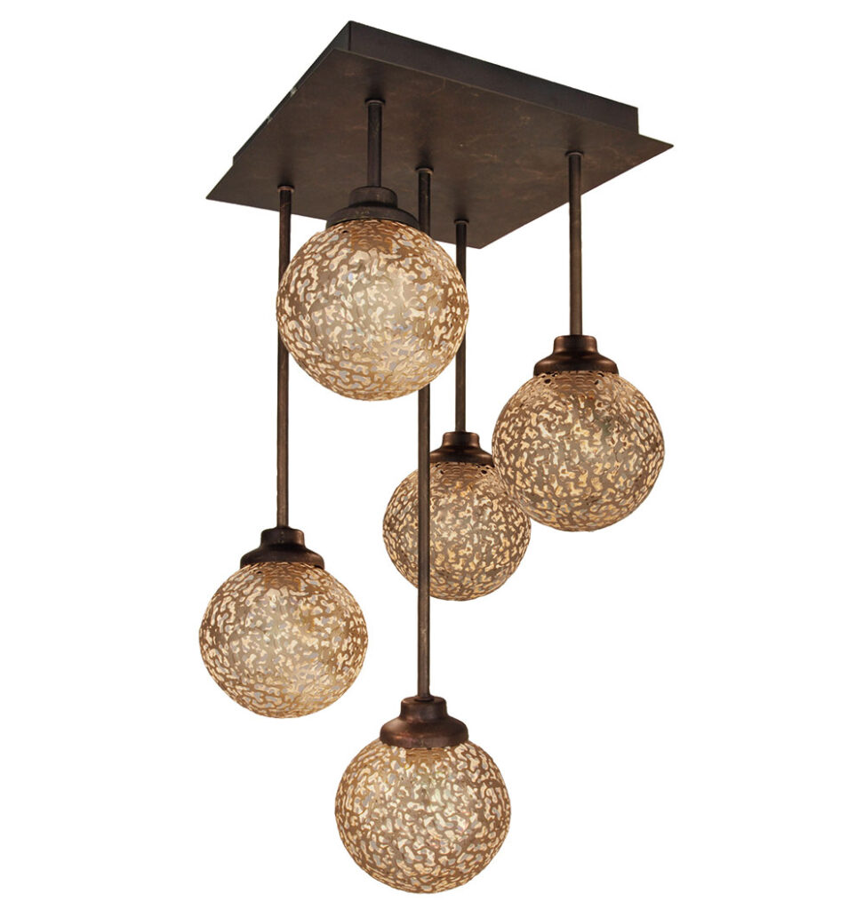 Viokef Φωτιστικό Οροφής Sissy 5Φ Μεταλλικό με Πλέγμα Χρυσό Ματ και Ανάρτηση Καφέ Πατίνα