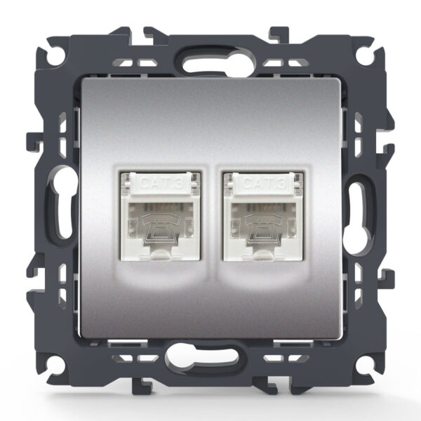 Acaelec Prime Μηχανισμός Πρίζα Τηλεφώνου Διπλή RJ11 Αλουμίνιο Ματ