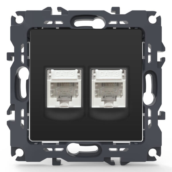 Acaelec Prime Μηχανισμός Πρίζα Τηλεφώνου Διπλή RJ11 Ανθρακί Ματ