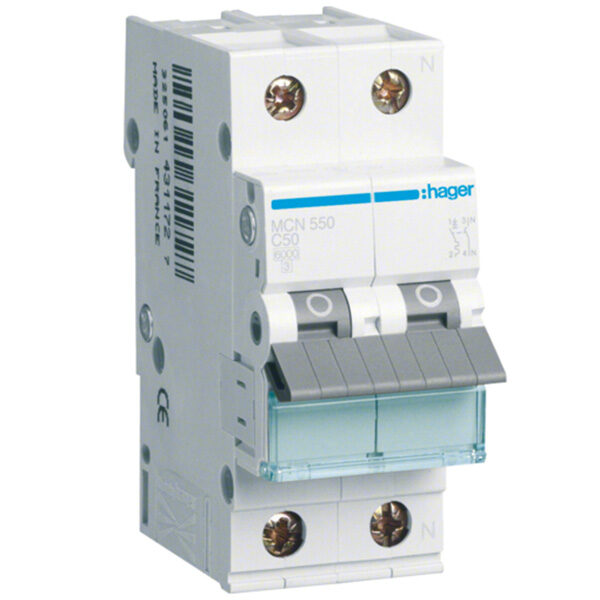 Hager Μικροαυτόματη Ασφάλεια MCN 50A 6kA 1P+N 2M 230V Καμπύλη C