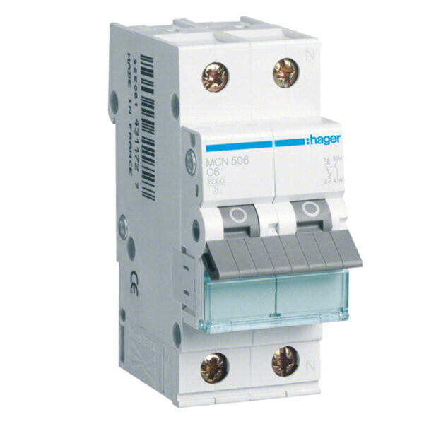 Hager Μικροαυτόματη Ασφάλεια MCN 6A 6kA 1P+N 2M 230V Καμπύλη C