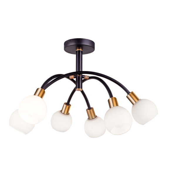 Viokef Φωτιστικό Οροφής Elisa 6Φ Οπαλίνα Ματ και Ανάρτηση Μαύρη με Χρυσό