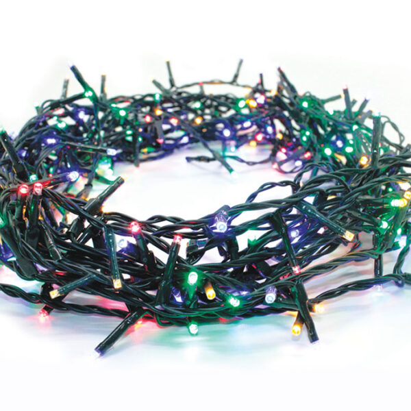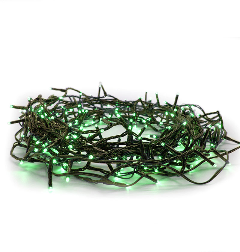 Χριστουγεννιάτικα λαμπάκια LED σε σειρά με αντάπτορα και 8 προγράμματα, κάθε led έχει απόσταση με το άλλο 5 cm, είναι ιδανικό για εξωτερικό χώρο. Το καλώδιο είναι σε πράσινο χρώμα.