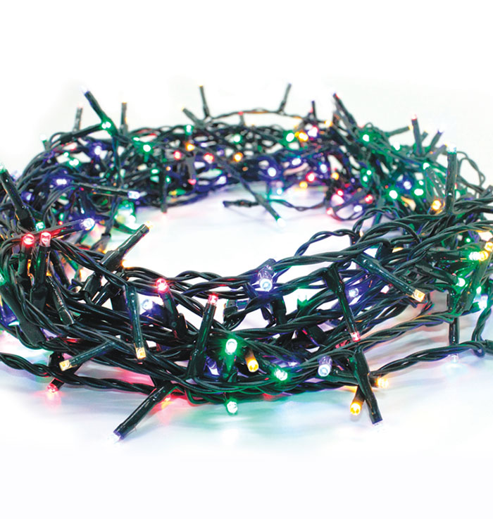 Χριστουγεννιάτικα λαμπάκια LED σε σειρά με αντάπτορα και 8 προγράμματα, κάθε led έχει απόσταση με το άλλο 5 cm, είναι ιδανικό για εξωτερικό χώρο. Το καλώδιο είναι σε πράσινο χρώμα.