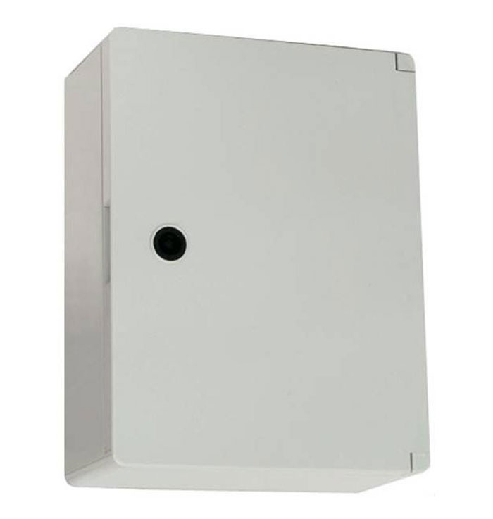 Το πλαστικό ερμάριο είναι κατασκευασμένο από υλικό ABS και διαθέτει μεταλλική πλάτη γαλβανισμένη. Έχει χρώμα Ral 7035 (γκρι) και έχει βαθμό προστασίας IP65, προσφέροντας αντοχή στη σκόνη και το νερό.