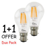 Diolamp Λάμπα LED Filament Β22 7 Watt 620Lm 230V Vintage Duo Pack 1+1 – 4000Κ Φυσικό Λευκό