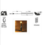 Χριστουγεννιάτικα λαμπάκια 100LED με Πρόγραμμα, με πράσινο καλώδιο και θερμοκρασία χρώματος θερμό λευκό. Με μήκος 5 μέτρα, μεγάλη αντοχή, έντονο φως , 100% ασφάλεια καθώς το λαμπάκι δεν θερμαίνεται και μικρή κατανάλωση ρεύματος.