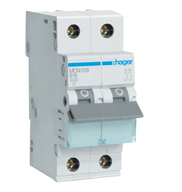 Hager Μικροαυτόματη Ασφάλεια MCN 16A 6kA 1P+N 2M 230V Καμπύλη C