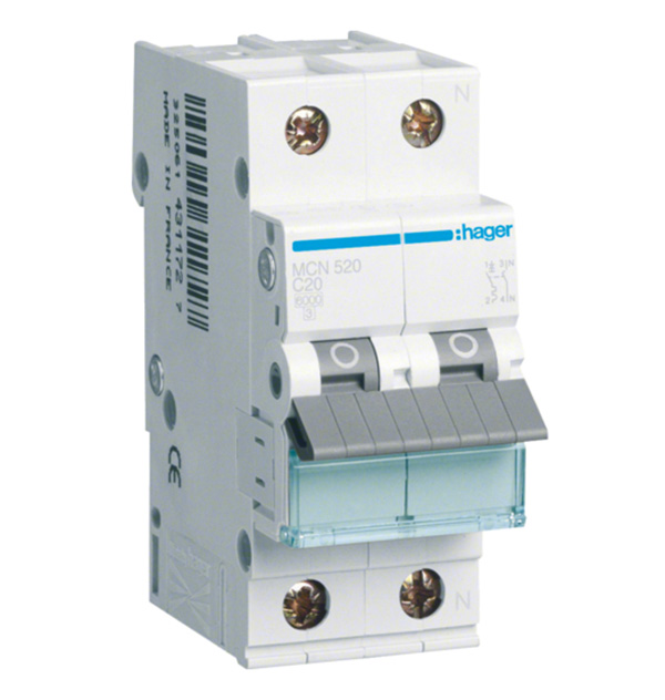 Hager Μικροαυτόματη Ασφάλεια MCN 20A 6kA 1P+N 2M 230V Καμπύλη C