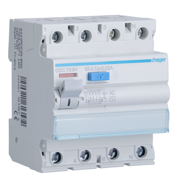 Hager Ρελέ Διαρροής CDC 63A 4P 400V 30mA ΑC