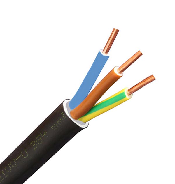 Καλώδιο ισχύος μονόκλωνου αγωγού NYY J1VV-U 3X4mm² σε μαύρο χρώμα, με μόνωση και μανδύα από pvc, για σταθερή εγκατάσταση σε ξηρούς ή υγρούς χώρους στον αέρα ή στο έδαφος.