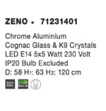Nova Luce Zeno – Πολυέλαιος 5Φ Μελί & Χρώμιο με Κρύσταλλο Κ9