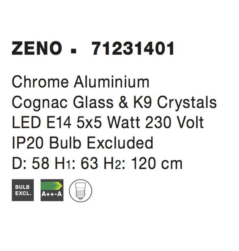 Ο Zeno ξεχωρίζει για το μελί γυαλί σε συνδυασμό με χρωμιωμένες μεταλλικές λεπτομέρειες, δημιουργώντας ένα φωτιστικό που αποπνέει κομψότητα και φινέτσα. Τα κρύσταλλα Κ9 προσθέτουν λάμψη και πολυτέλεια, αντανακλώντας το φως με μοναδικό τρόπο.