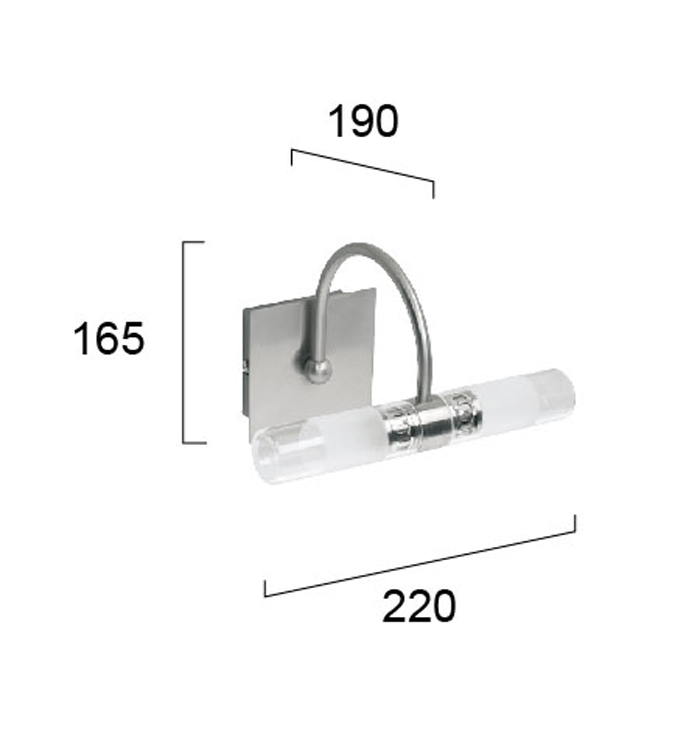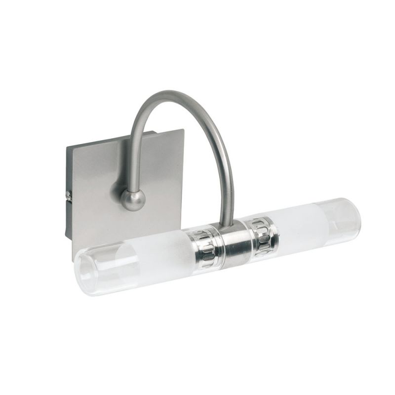 Μοντέρνα απλίκα μπάνιου με μπράτσο Tube 460000 από την εταιρεία Viokef σε νίκελ ματ με διάφανο γυαλί. Κατάλληλο τόσο για οικιακό όσο και επαγγελματικό χώρο. Με πλάτος 22 εκατοστά, μήκος 19 εκατοστά και ύψος 16,5 εκατοστά.