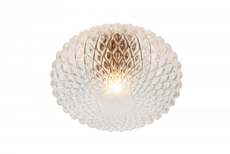 Viokef Φωτιστικό Οροφής Ester Γυαλί Ανάγλυφο Διάφανο και Ανάρτηση Χρυσή