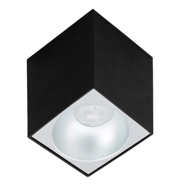 Φωτιστικό οροφής σποτ gu10 από την εταιρεία Viokef της σειράς Jhonny 4240801. Είναι κατασκευασμένο από αλουμίνιο και βαμένο με ηλεκτροστατική βαφή. Το εξωτερικό χρώμα είναι μαύρο και το εσωτερικό σε ασημί.
