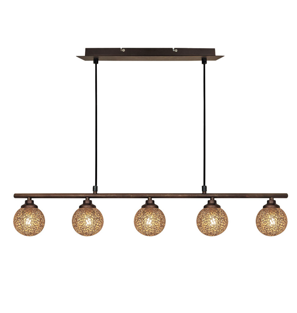 Viokef Κρεμαστό Φωτιστικό Sissy 5Φ Μεταλλικό με Πλέγμα Χρυσό Ματ και Ανάρτηση Καφέ Πατίνα