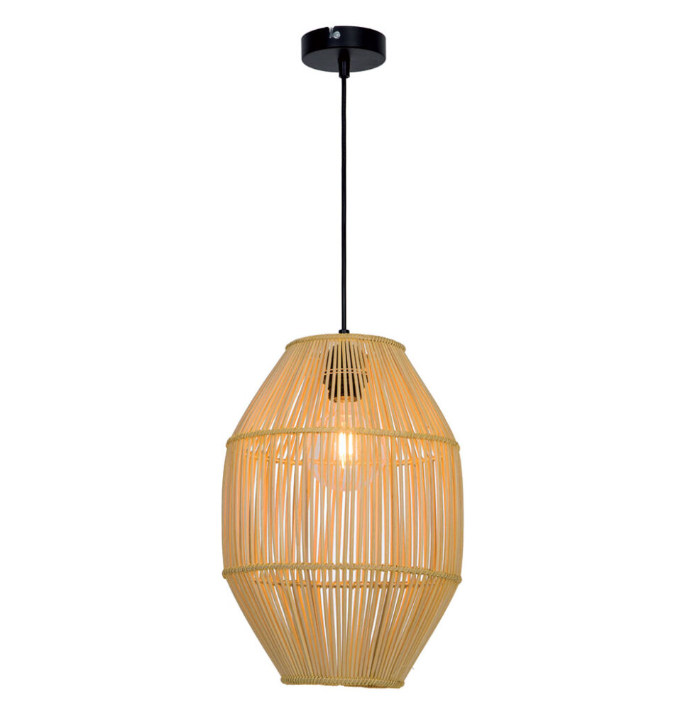 Viokef Κρεμαστό Φωτιστικό 40cm Leta Πλεκτό Καλάθι σε Φυσικό Χρώμα με Μαύρη Ανάρτηση