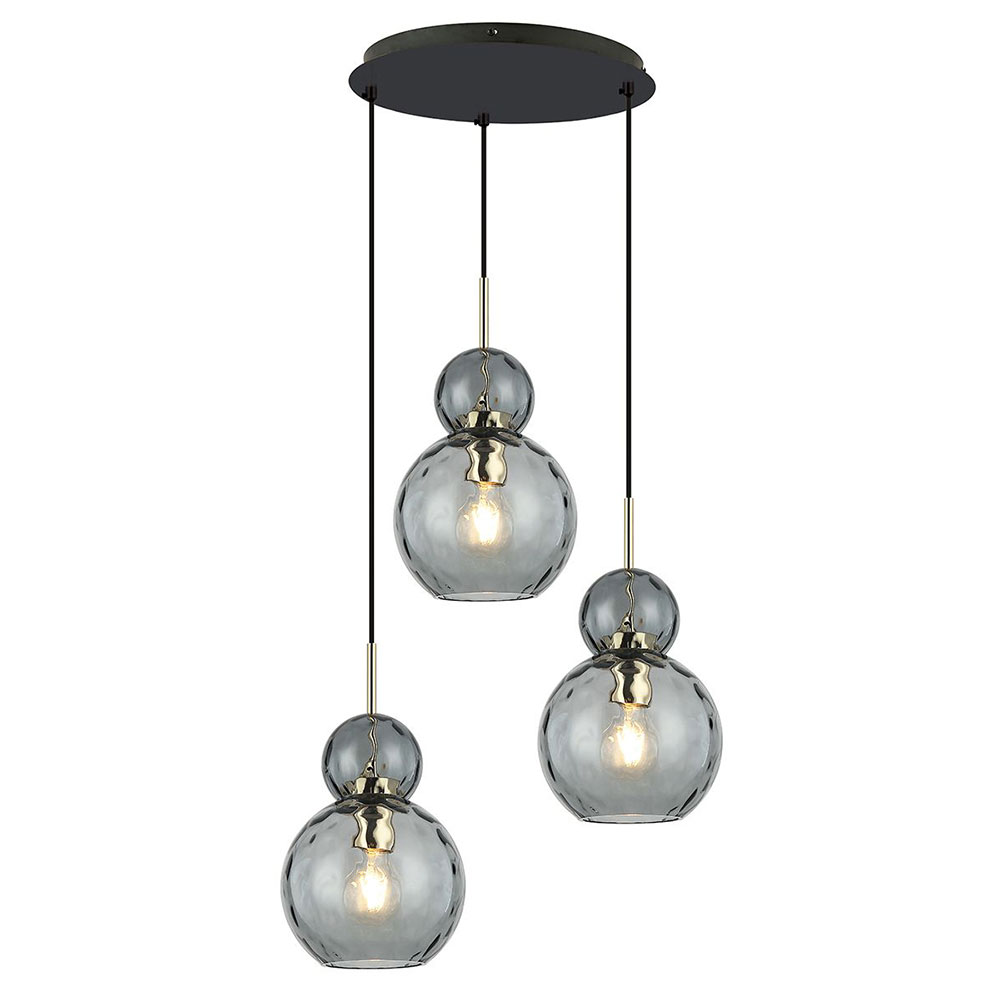 Viokef Κρεμαστό Φωτιστικό Firenze Φ30cm 3Φ Ε27 Μεταλλικό με Φιμέ Γυαλί